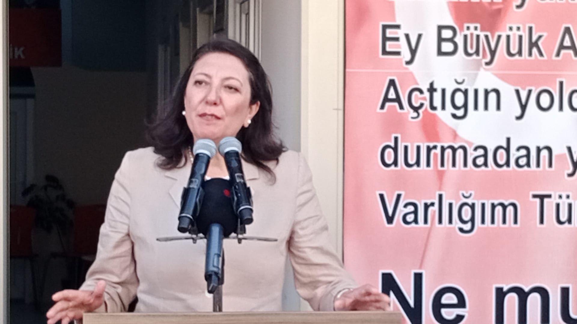 Akabinde CHP Çerkezköy İlçe Başkanı Ayfer Dönmez söz aldı. CHP’de uzun yıllardır görev aldığını vurgulayan Dönmez, “Ulu Önderimiz Gazi Mustafa Kemal Atatürk’ün kurduğu ve bizlere emanet ettiği Türkiye Cumhuriyeti’nin kurucu değerlerinin mevcut iktidar tarafından her geçen tırpanlandığını, adaletsizliğin arttığını, fırsat eşitliğinin ortadan kalktığını görüp sadece izleyerek, şikayet etmekle olmaz, bir şey yapmayalım diyerek, siyasete girip mücadele etmeliyim diyerek, Cumhuriyet Halk Partisine üye oldum. Kadın kollarında başlayan mücadelem daha sonra İlçe yöneticiliği, Belediye Meclis üyeliği ve halen yürütmekte olduğum ve onur duyduğum İlçe Başkanlığı ile devam etmektedir. Atatürk İlke ve devrimlerine, laik Cumhuriyete olan bağlılığımı, mücadeleci ve pes etmeyen tarafımı burada bulunan çoğu kişinin bildiğine eminim.” ifadelerini kullandı.