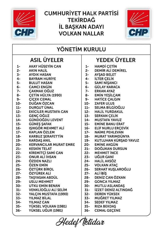 19 yönetim kurulu üyesinin Ekim ayında istifa etmesi sonrası yönetimi düşen CHP Tekirdağ İl Başkanlığı 4 Aralık Pazar günü kongreye gitti. Tek listeyle gidilen seçimlerde Volkan Nallar il başkanlığına seçildi