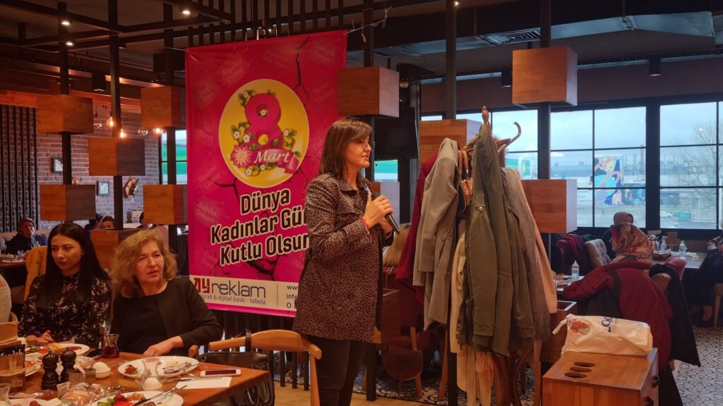 Bilge’nin ardından bir konuşma da bir dönem CHP Tekirdağ Milletvekili Adaylığı yapan Arzu Mandalı Sucu oldu: “Bir sürü kadının can vererek bugünü var etmesiyle biz 8 Mart Dünya Kadınlar Günü’nü kutluyoruz. Kadın emekçi, kadın kıymetli, kadın var olmalı ki dünya var olmalı. Yaşadığımız süreçte, salgında, savaşta kadınların önemini görüyoruz. Kadınlar toplumda var edendir, annedir. Kadına hak ettiği değeri en çok kadınların vermesini istiyorum. Biz kadınlar olarak sorumlulukların altında ezilerek büyütülüyoruz ve kızlarımızı da aynı hassasiyetle büyütüyoruz. Maalesef oğullarımıza gösterdiğimiz toleransı, kızlarımıza gösteremiyoruz. Ya hep beraber hepimiz, ya hiçbirimiz. Önce kendi kıymetimizi bilelim ve hep birlikte mutlu olalım. Hepinizin 8 Mart Dünya Kadınlar Günü’nü kutluyorum.”
