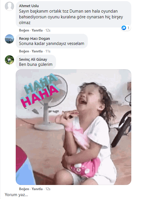 Kapaklı Belediye Başkanı Mustafa Çetin de bu furyaya uyarak sosyal medya hesabından bir paylaşımda bulunarak, “Her türlü manipülasyona karşı; Kur üzerinden oynanan oyunlara karşı; Ekonomi üzerinden ülkemize yön vermeye çalışanlara karşı Cumhurbaşkanımız Sn. Recep Tayyip Erdoğan’ın yanındayız, mücadelesine ortağız.” ifadelerini kullandı.